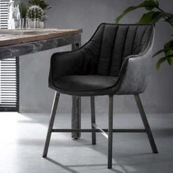 Giga Meubel Eetkamerfauteuil Zwart – PU-Leer – RVS Onderstel