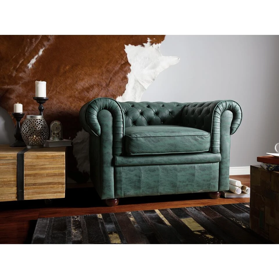 Beliani Fauteuil CHESTERFIELD – Groen Kunstleer