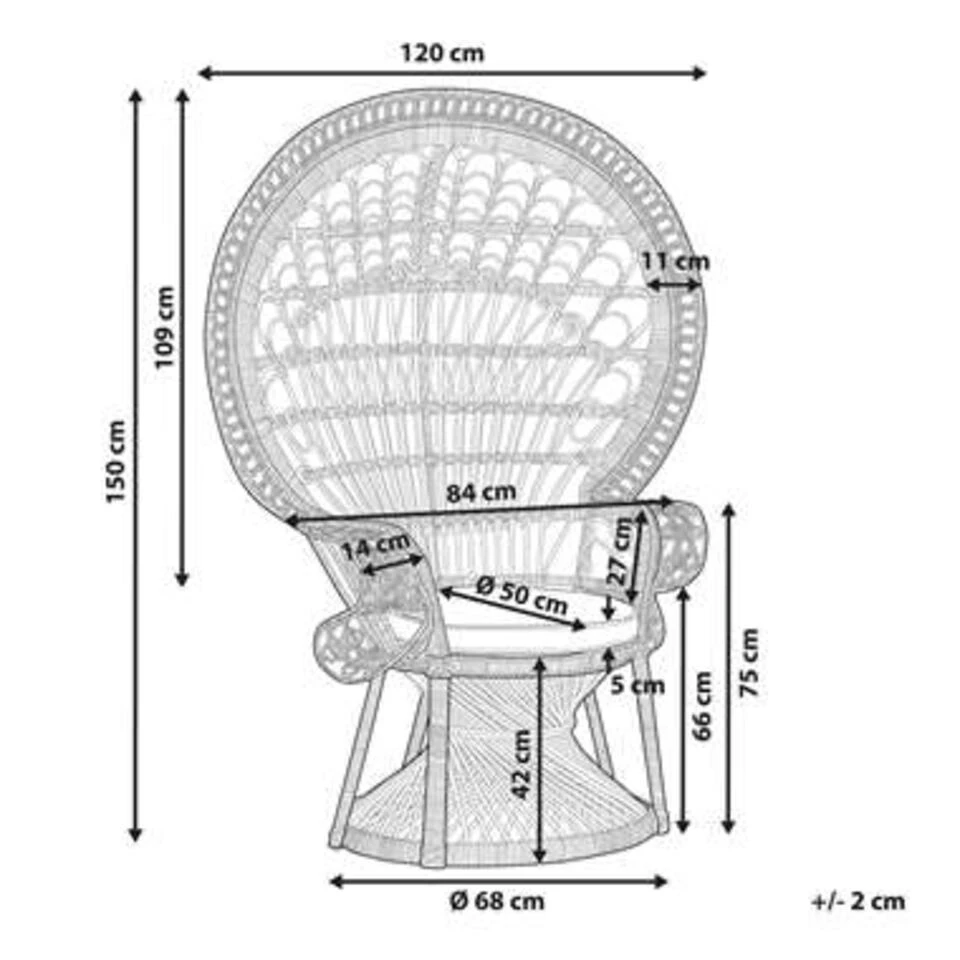 Beliani Fauteuil EMMANUELLE – Beige Rotan