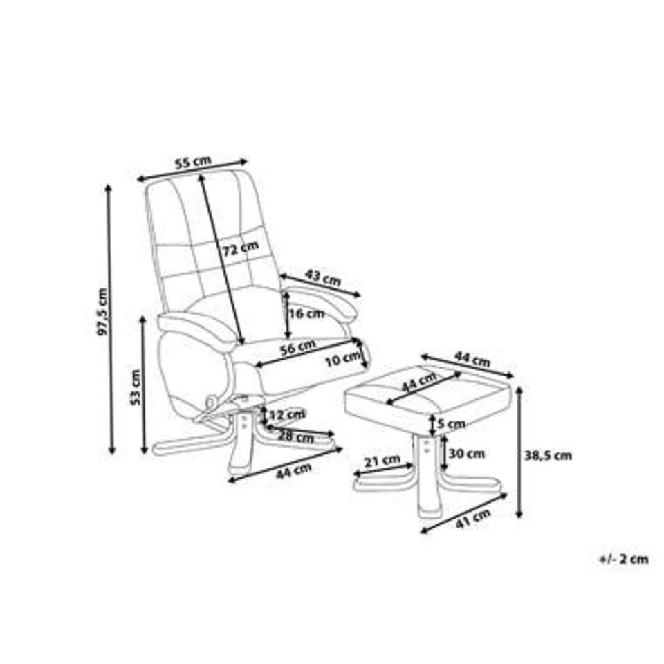 Relaxstoel met verwarmingsfunctie en praktische voetenbank. De zitting, de rugleuning en de armleuningen zijn bekleed met hoogwaardig beige kunstleer en hebben een aangename, dikke vulling. De rugleuning kan met behulp van verschillende niveau’s worden aangepast. De praktische voetenbank biedt extra comfort. Je kunt de massagefunctie activeren met de praktische afstandsbediening. Je hebt 5 programma’s in 2 massage-intensiteiten voor 4 massagepunten in de lenden-, dij- en bovenrug om uit te kiezen. De verwarming in de onderrug, net als de massagefunctie, kun je gebruiken door de timer in te stellen op 15 of 60 minuten. De basis van stevig, bruin multiplex dat 360° kan worden gedraaid, garandeert een veilige stand.