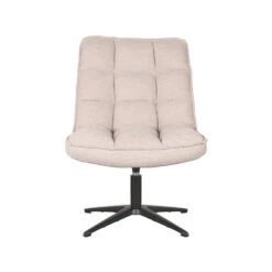 Fauteuil Vince is een ergonomische draaifauteuil uitgevoerd in naturel kleurig bouclé. Een zachte, geweven stof met een oppervlakte van geweven lusjes. De mooie strakke lijnen in combinatie met de subtiele rondingen zorgen ervoor dat Vince een lust voor het oog is en daarnaast is voorzien van maximaal comfort. De ‘kussens’ op het zitvlak en de rugleuning zorgen voor een lekkere zachte zit. Het blokstiksel zorgt voor een trendy, speelse en luxe uitstraling. De robuuste metalen kruispoot uitgevoerd in zwart zorgt voor stevigheid en geeft een moderne twist.