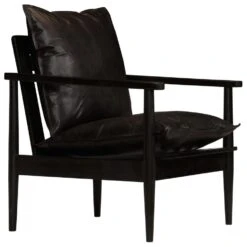 VidaXL Fauteuil Echt Leer Met Acaciahout Zwart