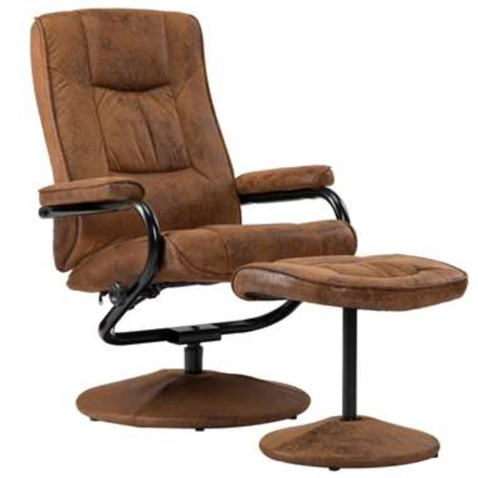 VidaXL Televisiefauteuil Met Voetenbankje Kunstsuède Bruin